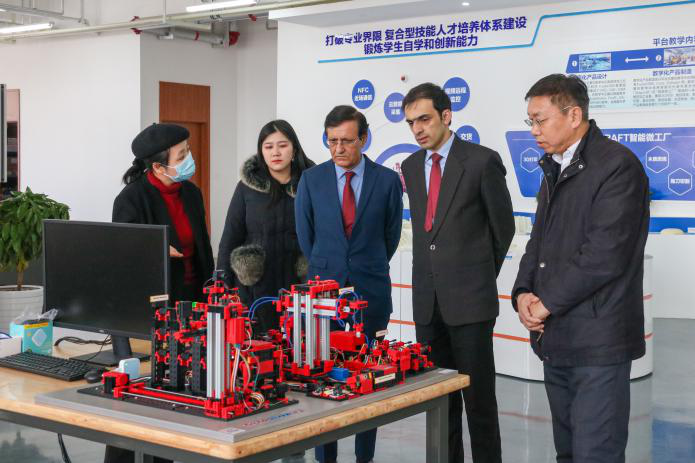 Амар и его сопровождающие посетили базу подготовки кораблей и океанологов, центр цифровых бизнес-операций, китайско-германскую интеграционную базу профессионального образования, центр социального обучения, общежитие для иностранных студентов и другие объекты. Они высоко оценили сильную успеваемость нашего колледжа и отличительные особенности профессионального образования.